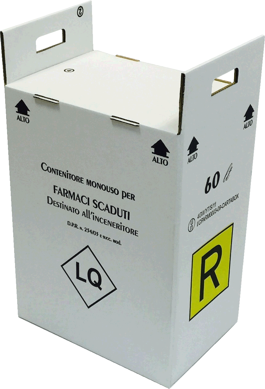 Contenitori speciali per la raccolta differenziata di materiali quali: rifiuti sanitari a rischio infettivo, farmaci, toner di stampanti e neon.